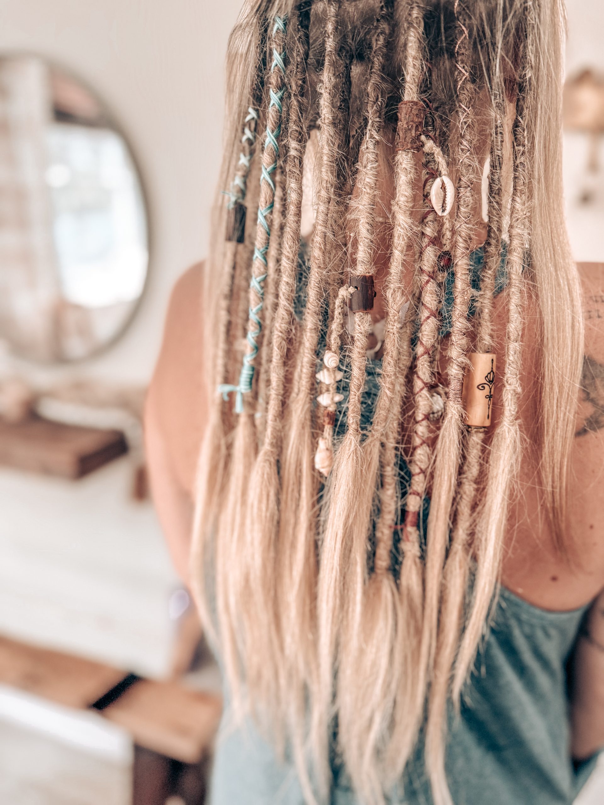 I highly recommend Savannah for your dreadlock needs. Before I came to her I had fried, broken hair that was thin and short. A friend had gotten some partials done by Savannah and I was in love with the way they looked. So I gave Savannah a call and was able to get an appointment quickly. She gave me two rows of dreadlocks which totaled 9 dreads. She decorated them with colored string, beads, and even a shell. I was surprised by how fast and gentle she was. And how much fun I had chatting with her. A month later I gave Savannah a call because I was so in love with the volume and length the dreadlock extensions gave me I had to get more! So I got another row which now brings my total up to 14 dreads. I’m in love with my dreads and treasure my new friendship with the dreadlock goddess herself.