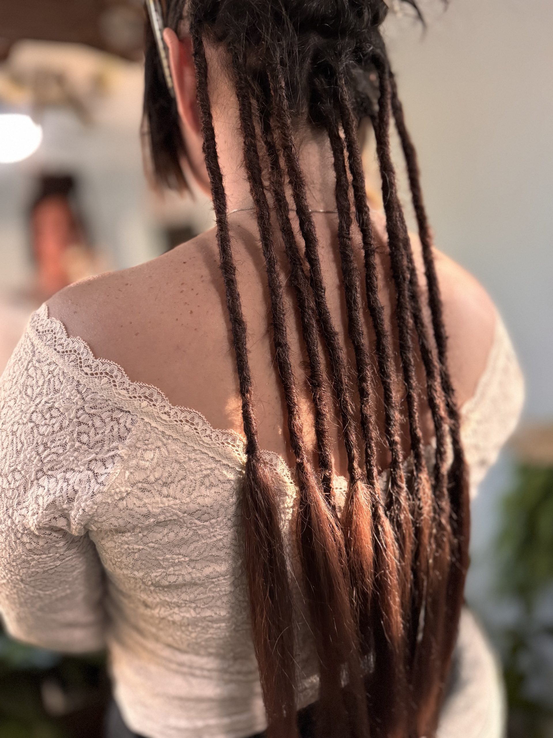 Dreadlock Extensions can be created to add length, volume, and even color to new or existing locs. Loc extensions are created by using 100% Human Hair, woven directly into the loc. This allows for a seamless and strong bond. We can custom create loc extensions of any length or color desired. Who doesn’t love long locs?